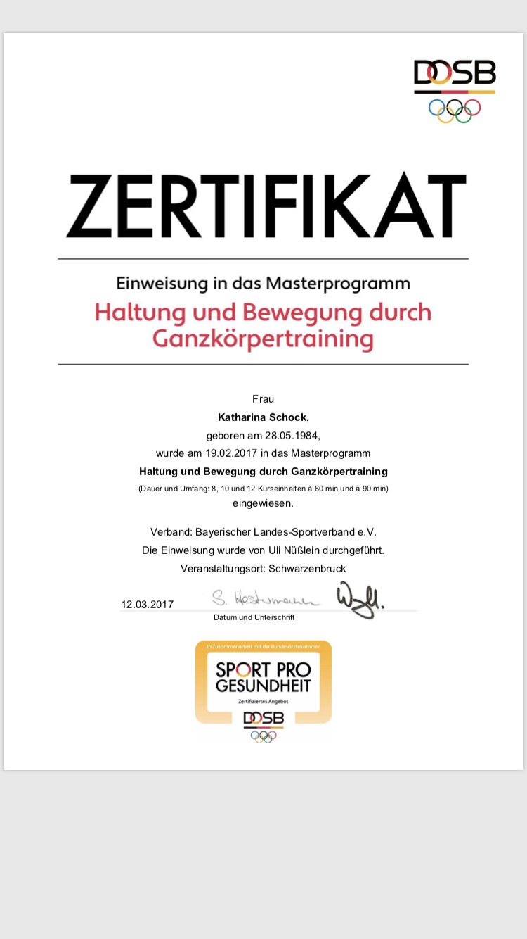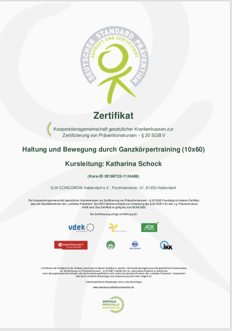 - Kursleitung: Kathi Schock Übungsleiterin B Prävention, Übungsleiterin B Sport in der Rehabilitation