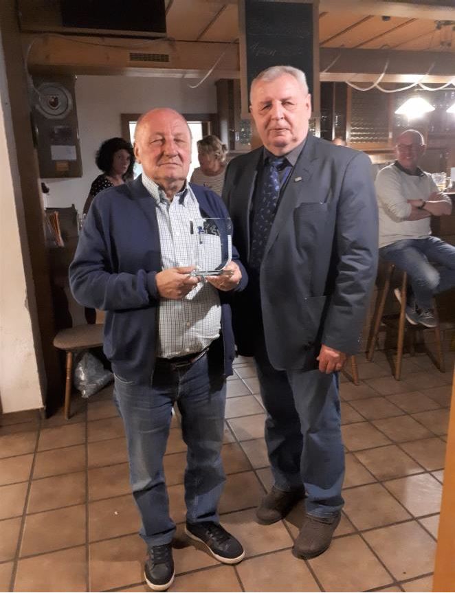 Mittlerweile ist er dem Verein 45 Jahre als Mitglied treu. Mit seinen jetzt 71 Jahren ist er immer noch als Platzwart tätig und beregnet an heißen Tagen fast täglich die beiden Sportplätze. Er macht es sehr gerne, weil auch sein 3-jähriger Enkel Elias gerne mit auf den Rasentraktor fährt. Diese Leistung ist vor dem Hintergrund seiner gesundheitlichen Einschränkung noch bemerkenswerter.